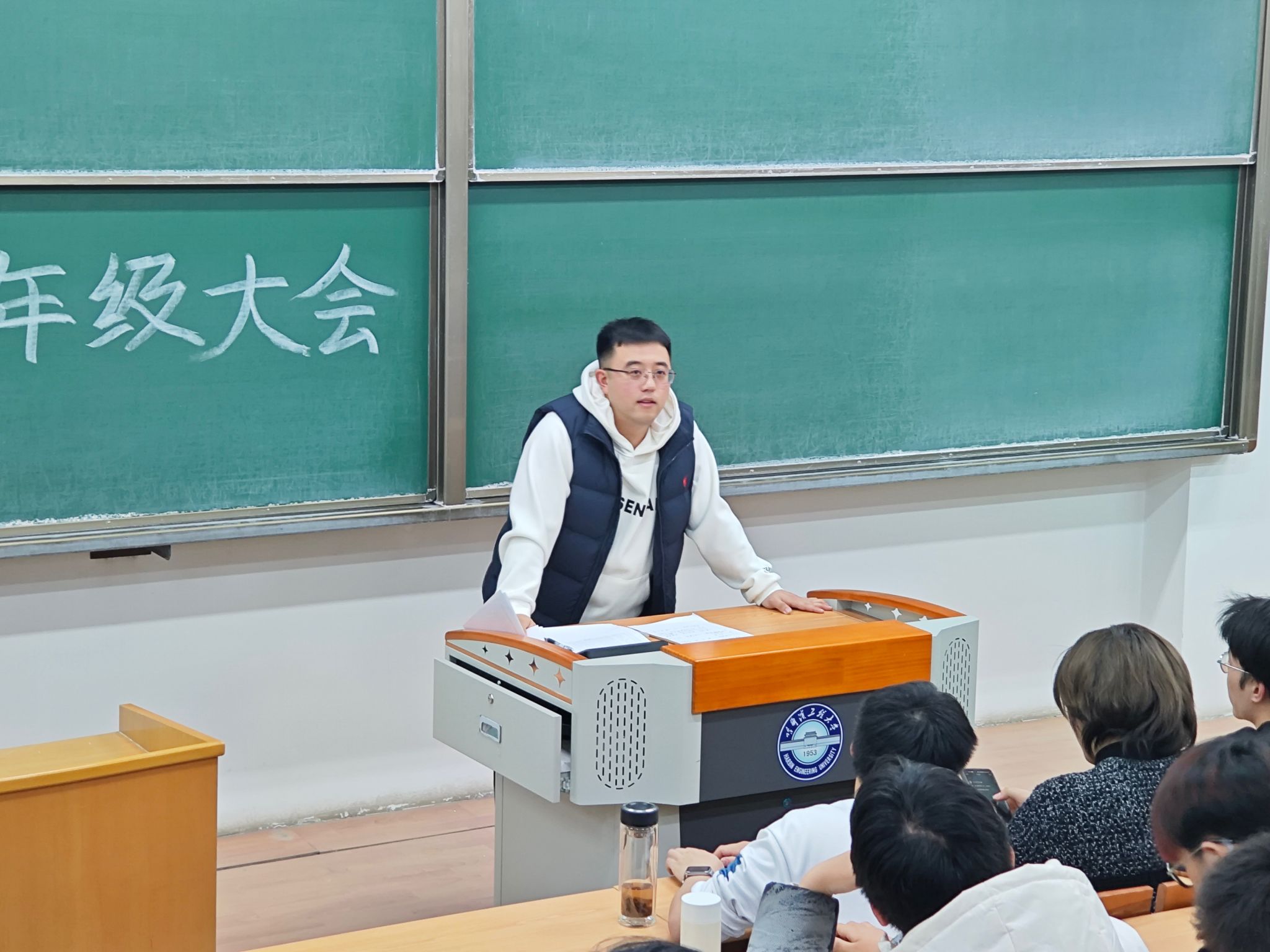 2024年9月27日晚上8点,星空体育官方网站2022级全体本科生在逸夫楼召开新学期年级大会。大会由星空体育官方网站2022级本科生辅导员张胜强主持。