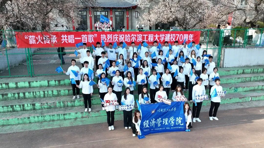 袁莹莹 2022093219:我很荣幸可以参与到我们经管学院承办的共唱一首歌的活动当中去,去感受我们哈军工哈船院哈工程的七十年蜕变后的风采。当我举起70年风雨兼程,70年岁月如歌的牌子,参与到我们校庆歌曲录制的活动当中去,走过了陈赓大将的雕像,走过了图书馆前的大工至善,大学至真,走过了十一号楼前的杏花长廊……我才明晰到学校七十年历史的光辉痕迹!我很自豪能加入到七十年校庆活动中去,我与母校共成长,希望母校能够越来越好!