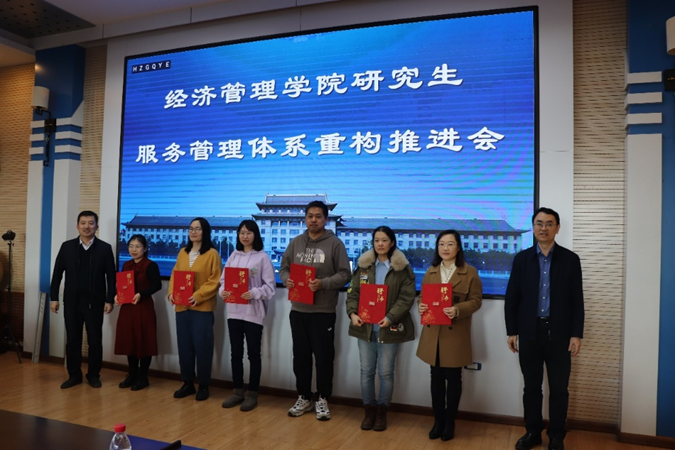 随后举行了研究生辅导员聘任仪式,于云亮书记宣读聘任文件,陈恒院长和侯磊副部长给6位研究生辅导员发放聘书。
