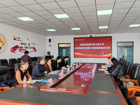 2024年3月15日,星空体育官方网站院长助理刘天森、实验中心主任贾洪雁、教务办主任邓志茹、专业学位中心培养办公室主任林金枫以及实验中心教师彭尔霞、许喜平赴哈尔滨理工大学经济与管理学院调研走访,针对实验教学模式改革、实践中心建设思路等事宜进行了深入交流。哈尔滨理工大学经济与管理学院教学副院长姚锋敏、实验中心主任周艳山、实验中心党支部书记郭琳介绍相关情况。