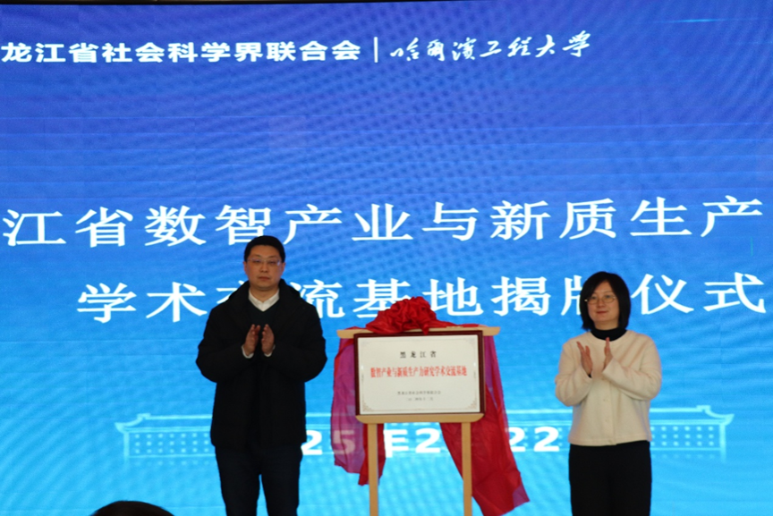 马琳、张翼飞共同为黑龙江省数智产业与新质生产力研究学术交流基地揭牌。