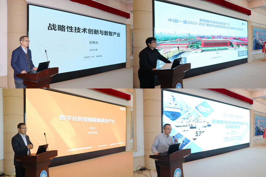辽宁大学王伟光教授,中国一重信息中心高级经理、高级工程师张瑾,山东捷瑞数字科技股份有限公司副总裁安士才,星空体育官方网站星空体育官方网站朱建新教授分别做了题为《战略性技术创新与数智产业发展》《数智融合驱动新质生产力:中国一重2023-2027数字化转型规划与AI场景化应用思考》《数字化转型赋能新质生产力》《管理数字化赋能新质生产力形成的思考》的专题报告。与会专家就数智产业与新质生产力发展进行深入研讨和交流,为数智产业与新质生产力研究学术交流基地发展建设贡献智慧和力量。