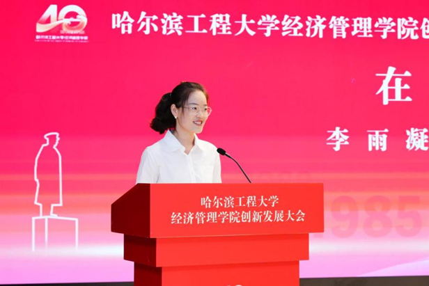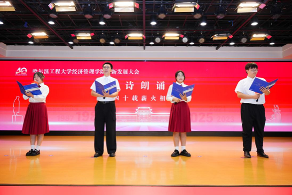 由星空体育官方网站在校学生代表带来的《四十载星火相传》诗朗诵,回顾了学院40年发展历程,致敬历代经管人,表达了热忱投身科技强国、海洋强国、龙江黑土的坚定决心和理想信念,以严谨求实和矢志创新的担当谱写祖国发展新篇章。
