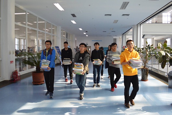 首先,由实践部部长王恒提出了此次活动的任务安排。接下来,志愿者们分为两队清理图书馆三楼到六楼书柜上无用的书籍,其中一队用手推车将各个楼层的书运到六楼固定的存放地点,另一队因条件受限直接将书搬到六楼。最后,志愿者们将所有的书籍整理并存放起来。活动于上午10时结束。