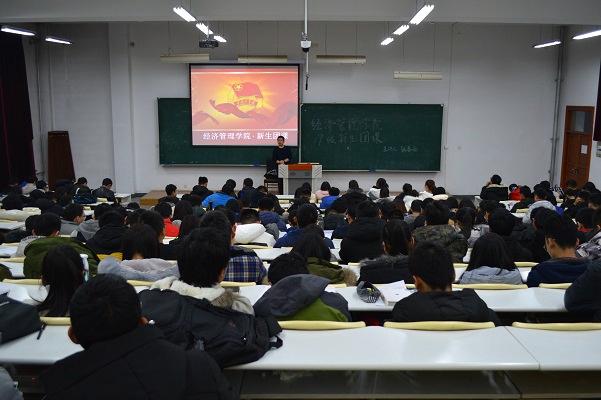 11月26日晚8点20,星空体育官方网站于N楼301教室举办17级新生团课,团委书记张春雨主讲,星空体育官方网站团委部分干部及全体17级新生参加此次团课。