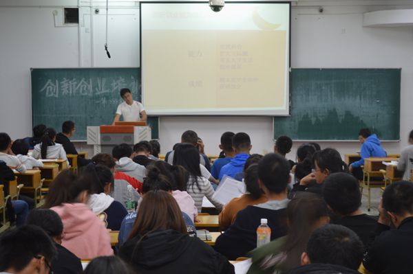 9月25日18时30分,星空体育官方网站团委创新创业指导中心于21b410与412两个教室开展创新创业培训,团委书记张春雨参加此次会议。团委副书记田佳榕和创新创业指导中心主任郭咸生担任本次培训的主讲人,17级全体新生参加此次培训。