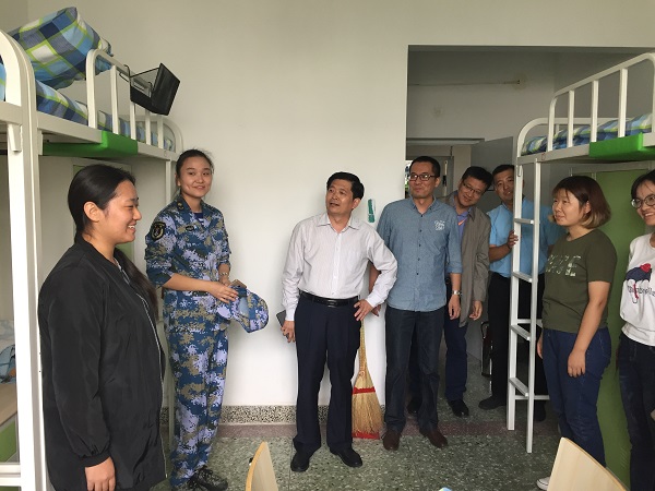 8月26日下午,副校长高晚欣、吴林志分别来到星空体育官方网站2017级新生宿舍看望新同学,学生工作处副处长王春秀、丛建伟,星空体育官方网站党委副书记于磊、辅导员张春雨、李文宝壮陪同走访。