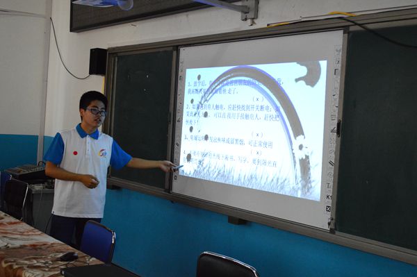 活动开始,志愿者首先播放安全常识教育宣传动画视频,以活泼生动的形式向小学生讲解了如何在日常生活中注意细节,防范火灾,提高他们的防范意识。随后志愿者以提问的形式进行安全常识的宣传,以提前准备好的问题向小朋友们提问,小朋友们积极举手、踊跃发言,志愿者为回答正确的小朋友发放奖品。一问一答的形式使小学生们更加积极的参与,有助于本次活动的顺利开展。