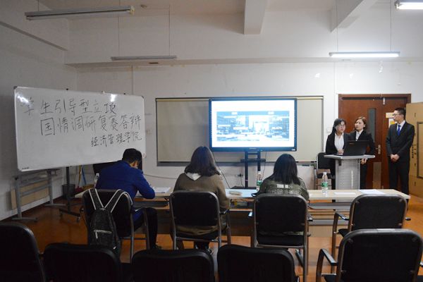 国情调研比赛前期共经历了长达三个月的问卷调查、数据分析与论文撰写环节,再通过之前的初赛选拔,最终有三十组团队进入本次复赛答辩。各个组需要在五分钟内阐述自己的内容,之后评委会进行三分钟的提问及点评。