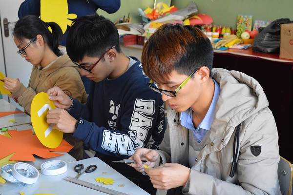 燎原小学是一所主要招收智力障碍儿童的特殊教育小学,为智力障碍儿童提供优秀的教育环境及资源。到达燎原小学后,在负责人的指引下,志愿者们与同学们进行互动,一同下棋,搭积木,聊天等。互动结束后志愿者前往活动室进行手工作业,为学校制作卡通剪纸。志愿者们相互配合,顺利完成任务。