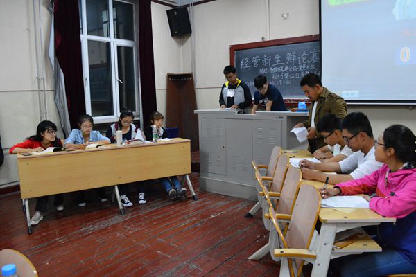 9月25日晚6时30分,星空体育官方网站学业指导部于11号楼0145、0142教室组织2016届新生辩论赛复赛。评委由经管学院辩论队优秀成员担任。中澳1班、中澳2班、工管1班、工管3班、经济1班与经济2班班级辩论队队员按时到场比赛,部分大一学生前来观看。