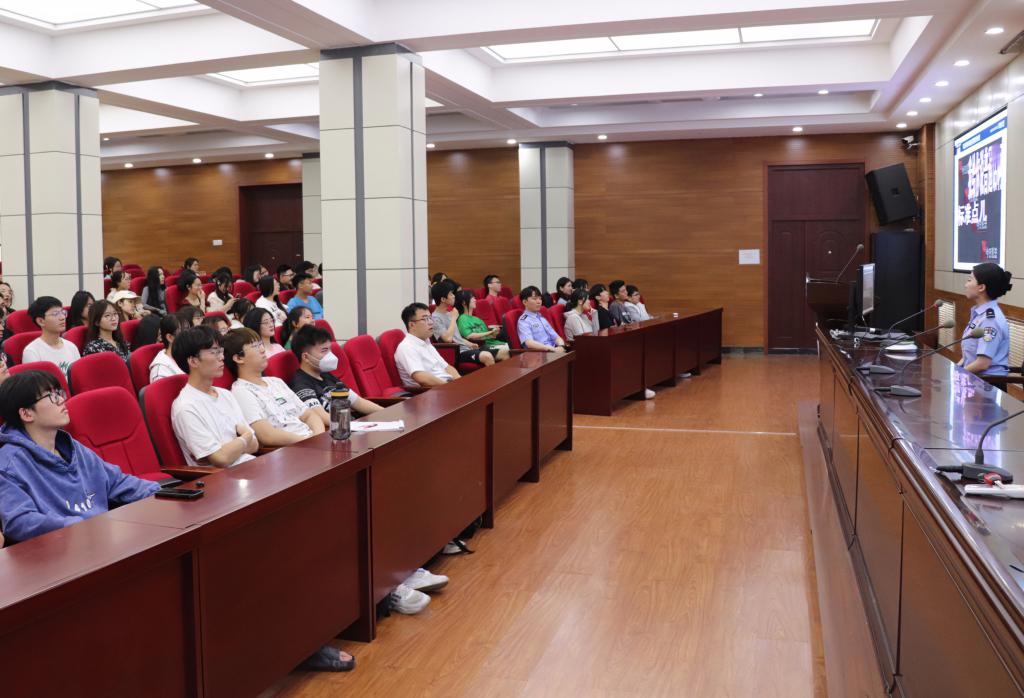 6月9日下午南岗区分局新型犯罪侦察大队两位警官应邀来到星空体育官方网站开展反电诈宣传进校园活动,通过进行反诈宣讲和双向互动的方式,宣传预防电信网络诈骗知识,不断增强广大师生安全防范意识,持续推进平安校园建设,共同撑起反诈“保护伞”。