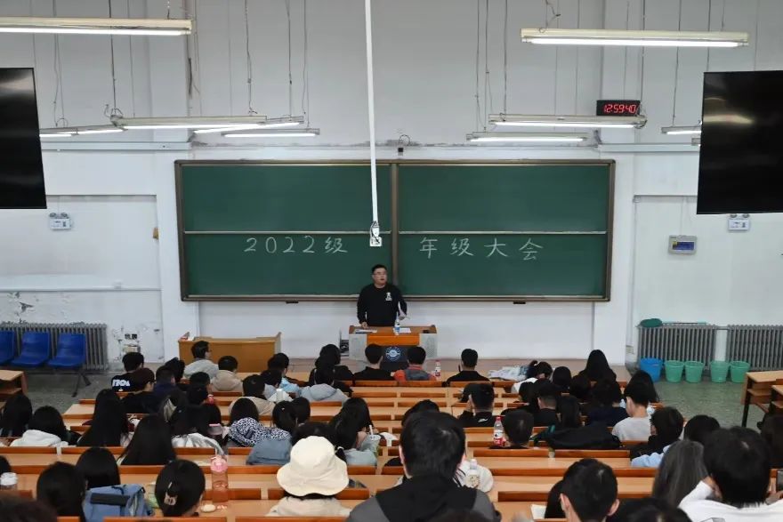 2023年10月11日上午12点,星空体育官方网站2022级全体本科生在逸夫楼召开新学期年级大会,197名学生齐聚一堂,新学期、新气象,已顺利度过大一新生期的2022级学子们即刻开启全新的大学生活。