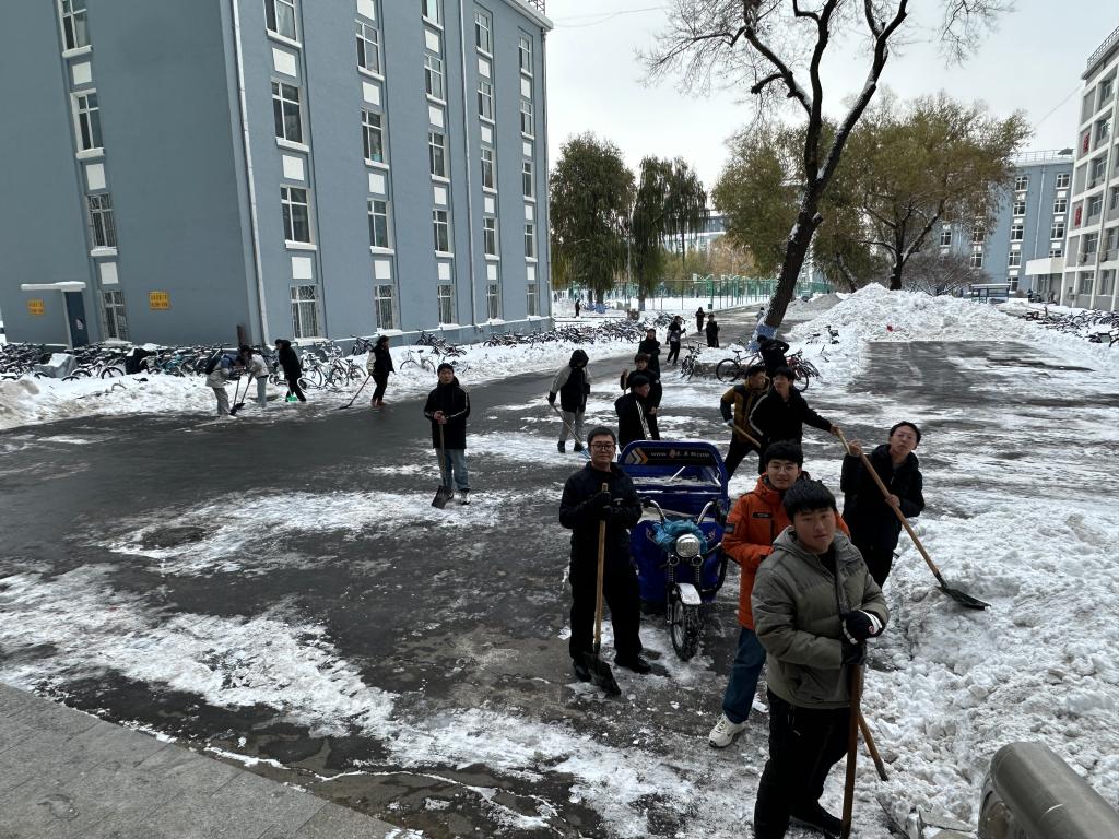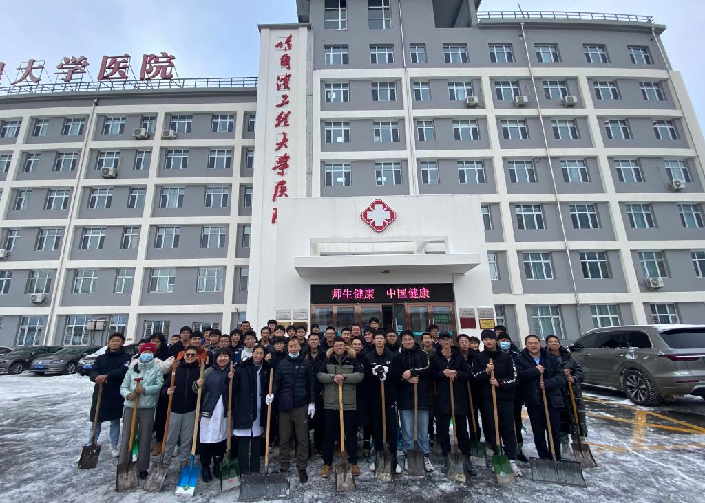 大家不畏严寒,齐心协力,铲的铲、推的推、扫的扫,干得热火朝天,经过一中午的辛勤劳动,路面的积雪被清扫,为师生的就医出行消除了隐患、提供了便利。