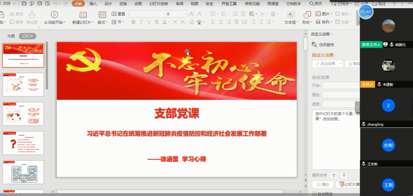 按照学校党委《关于开展“‘疫’线党旗红 战‘疫’当先锋”线上主题党日活动的通知》要求, 学院各党支部于3月13日至4月10日,利用腾讯会议平台,陆续开展了“‘疫’线党旗红 战‘疫’当先锋”线上主题党日活动。
